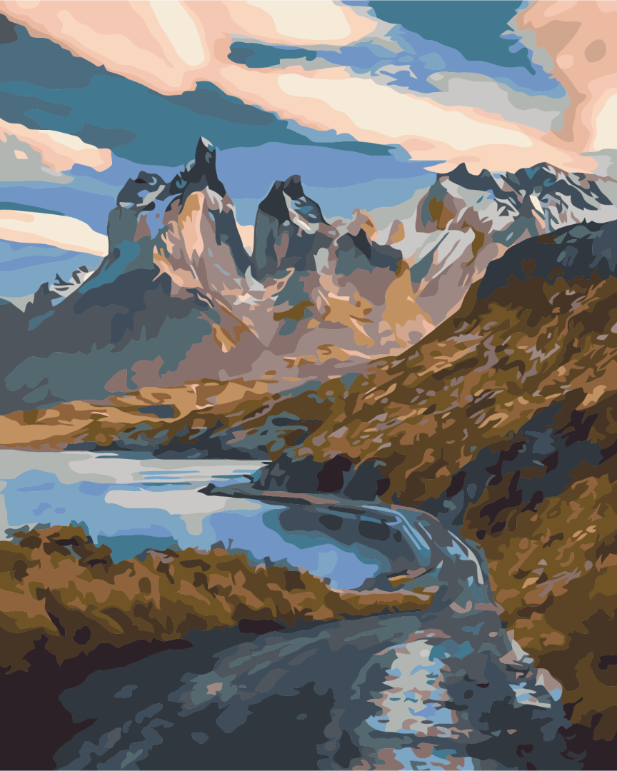 Elevate your artistic journey with Mountain Cliff Lakes, a sophisticated paint by numbers masterpiece. Immerse...