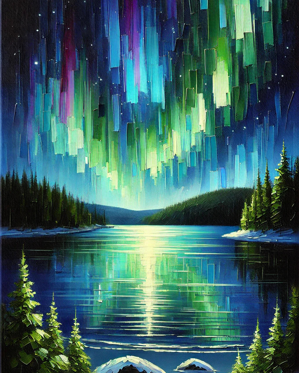 Transform your space with Northern Lights on Lake – a stunning diamond painting that captures...