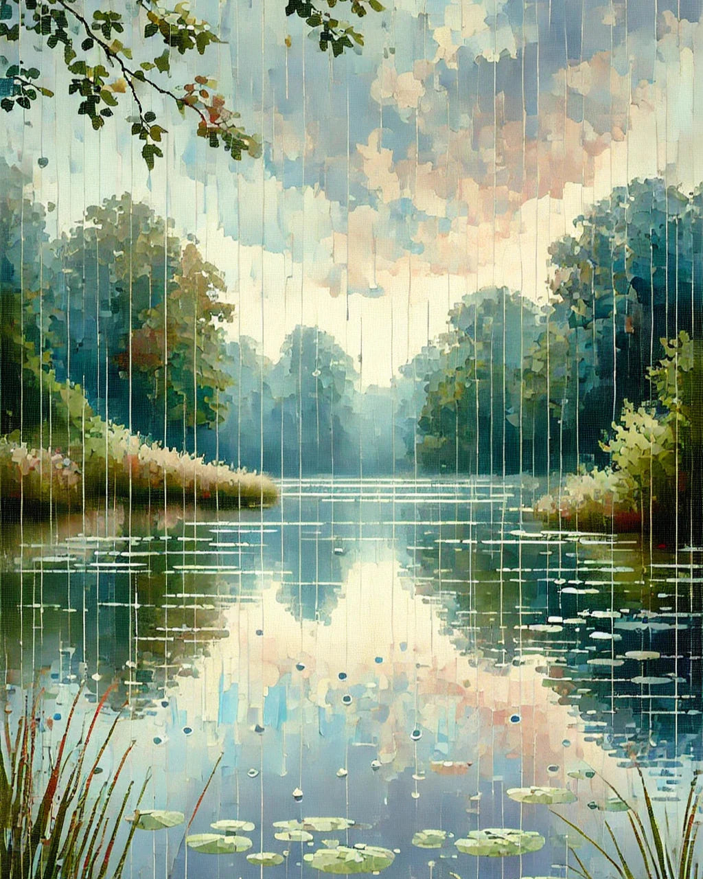 Rain on Pond - Diamond Painting
